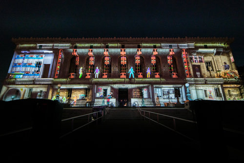 在底特律舉行的DLECTRICITY藝術節上,KlipCollective將一個信息時代的寓言帶到了底特律公共圖書館。